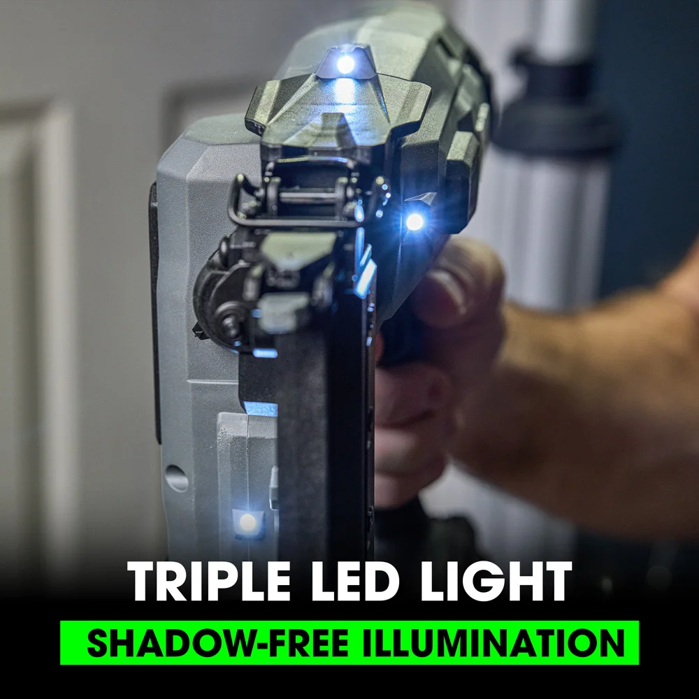 Drives up to 2,200 nails on a single charge with a 2.5Ah lithium battery (sold separately)