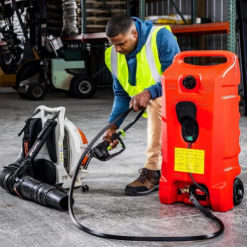 ✔️ 14-GALLON (53L) FUEL CADDY: The Powered Fueling Station is a gas can on wheels for farm, marine, lawn care equipment, home, and recreational use; A large capacity and convenient features make it great for filling vehicles and gas cans.