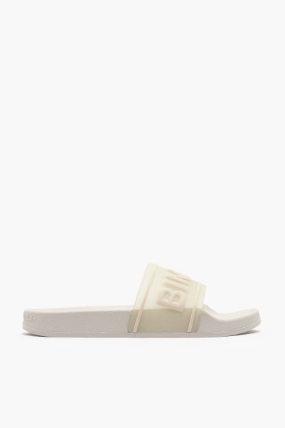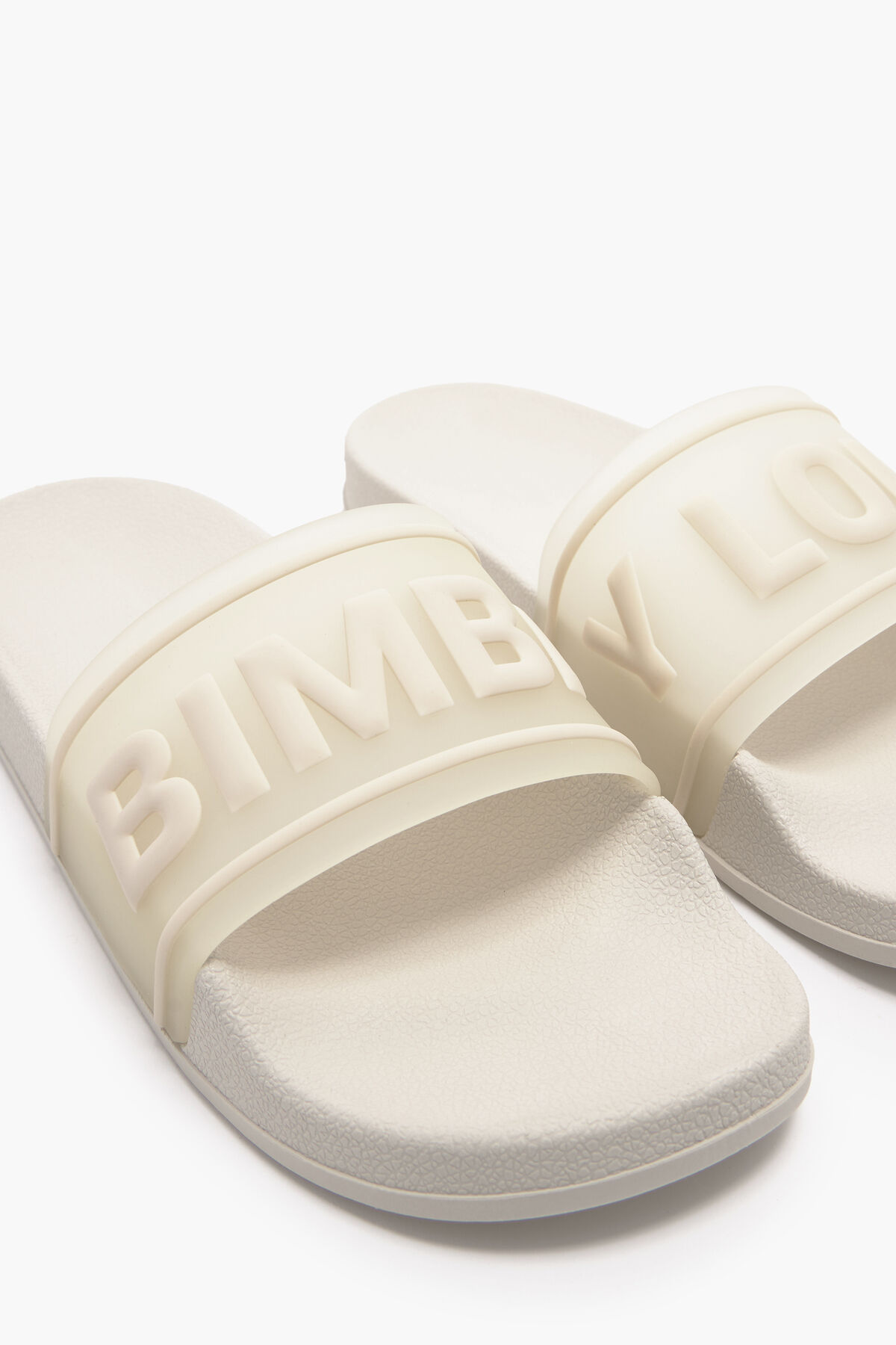 Chancla tipo pala con logo a tono en color blanco. Modelo con pala logotipada y fondo transparente. Suela logotipada con acabado rallado y Logo Chimo.