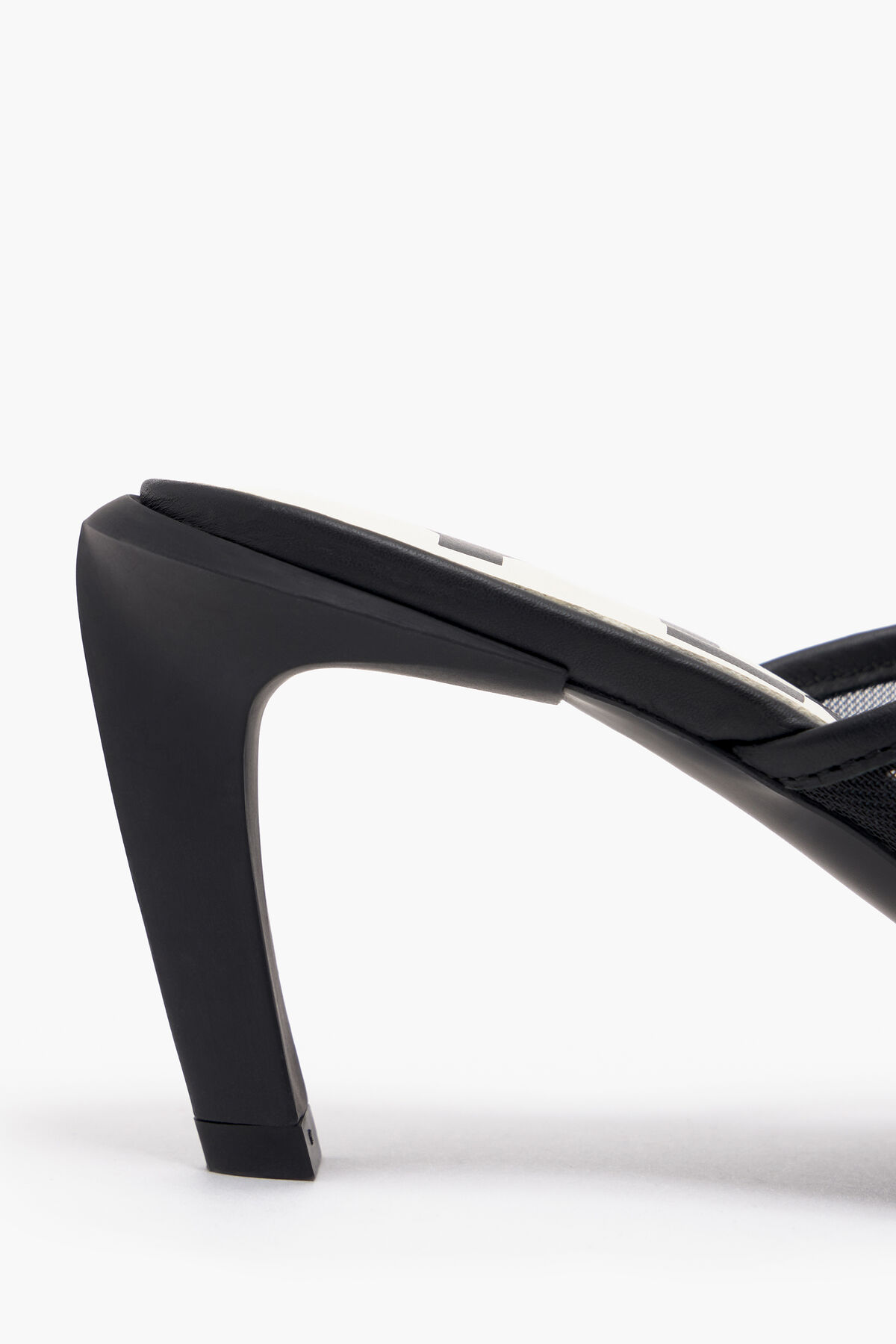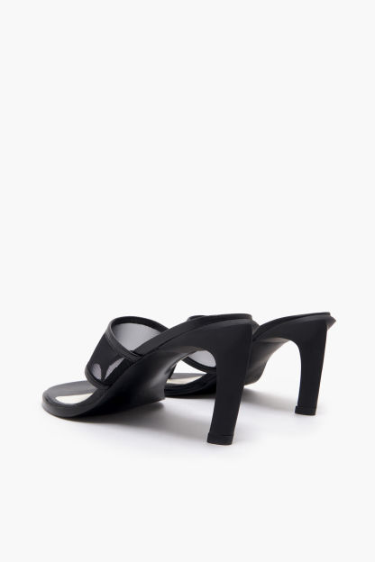 Sandalia con rejilla técnica y ribetes de piel con tacón en color negro. Modelo con plantilla personalizada, superlogo y piso logotipado.