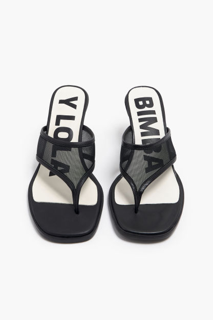 Sandalia tacón rejilla negra