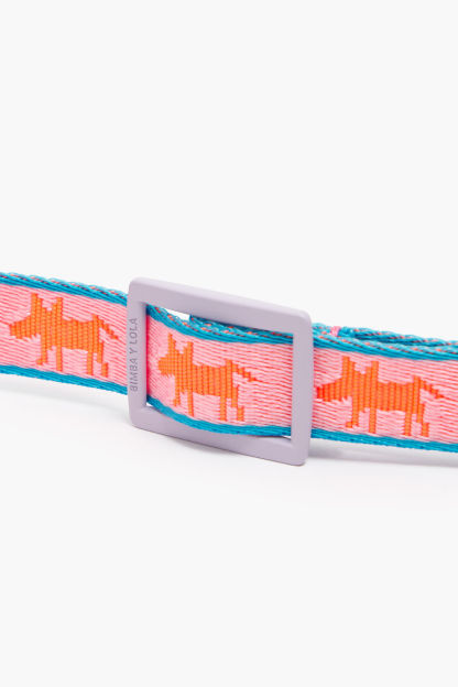 Collar para mascota con estampado de logo Lola en color rosa. Modelo con cierre metálico.
